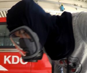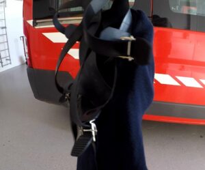 Ich kann die Maske und Flammschutzhaube in der Variante 1 & 2 gut aufziehen, weil ich mich aufgrund meiner Statur gut bewegen kann, auch wenn ich das AS-Gerät im Fahrzeug umgeschnallt habe und dann in der Folge erst meinen Jackenbund schießen muss. Das muss man auf alle Fälle testen, denn hier könnte so mancher Probleme haben.
