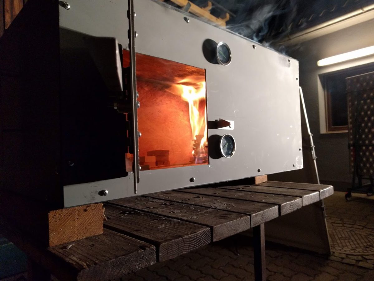 - In der Vorderplatte werden ein Ausschnitt für eine Tür und Bohrungen für Grilltermometer vorgesehen.