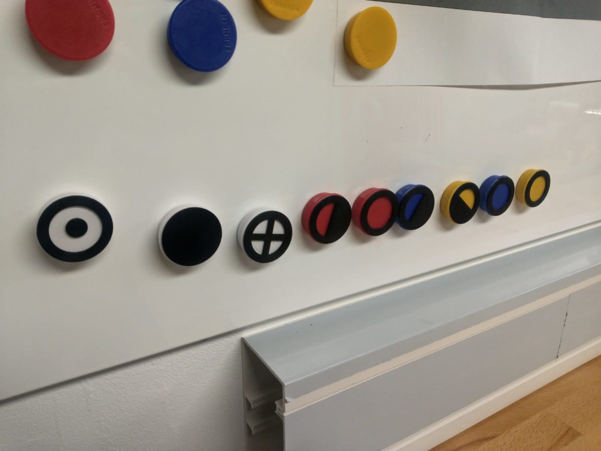 Dafür kann man beispielsweise Magnete in den entsprechenden Farben kaufen (weiß, blau, rot, gelb) und dann die entsprechenden taktischen Zeichen im 3D Drucker ausdrucken (oder einfach nur schwarz aufmalen – als low budget Variante).